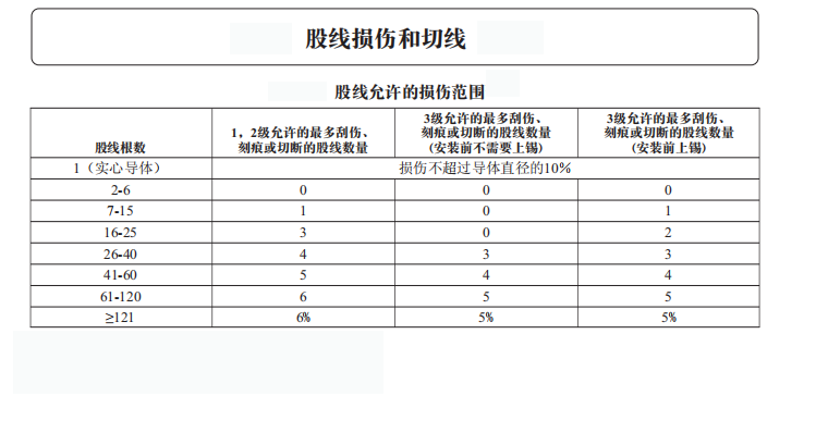 线束国际标准----电线股线允许损伤范围
